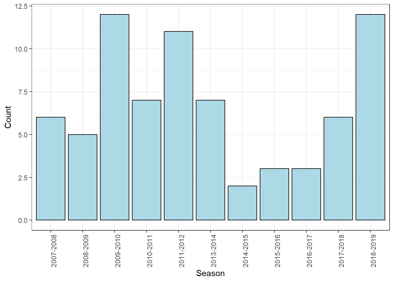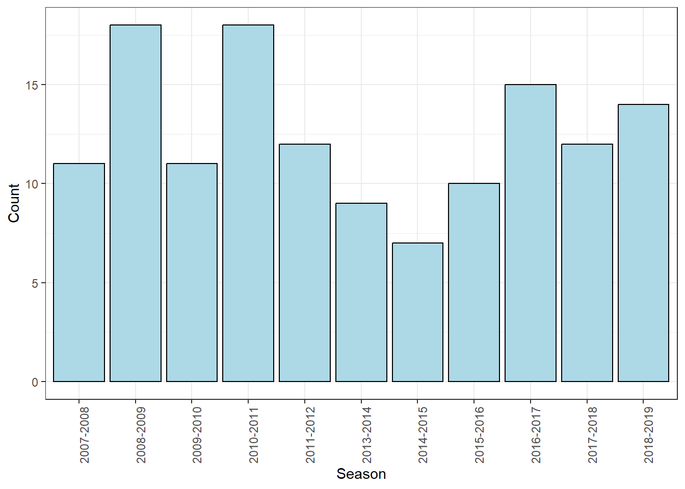 $ season <chr> "2007-2008", "2008-2009", "2009-2010", "2010-2011", "2011-20…