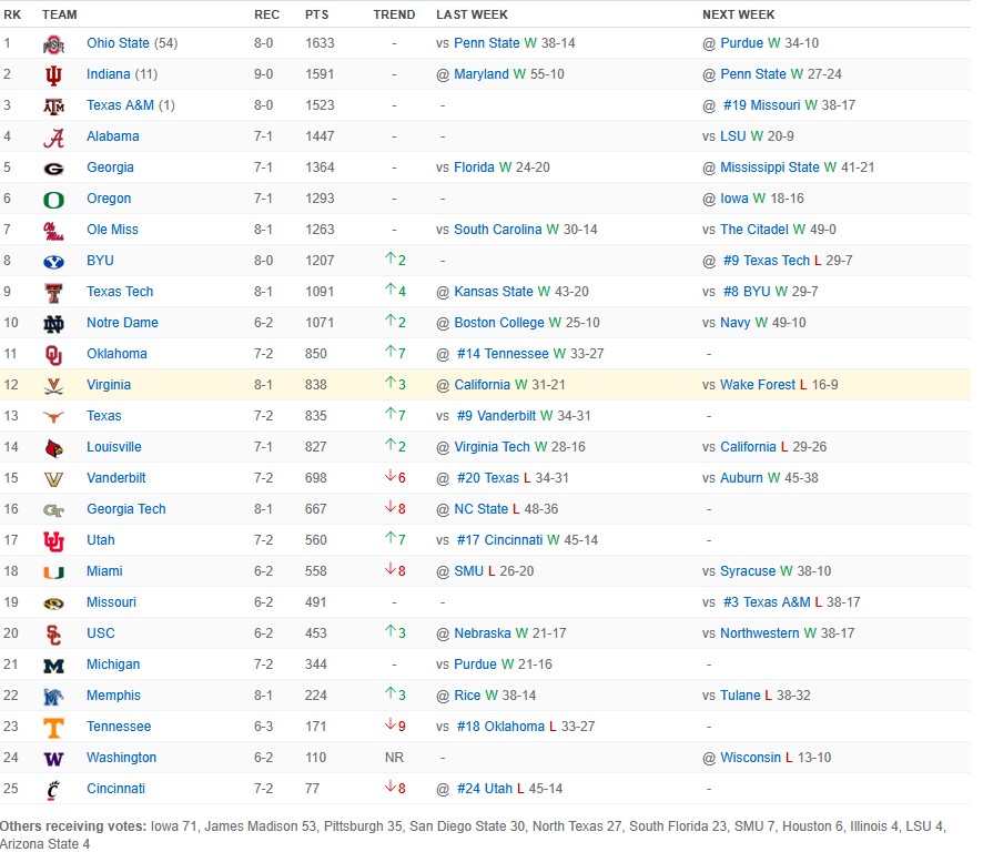 When comparing my rankings to the AP poll, Oregon, Georgia, BYU, and Notre Dame dropped a noticeable amount of spots but all stayed in the top 25